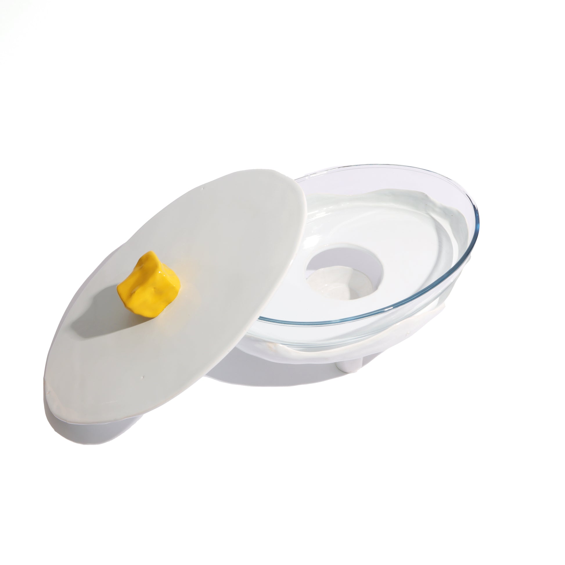 Handmade ceramic oval chafing dishes for serving food in style and keeping it warm.