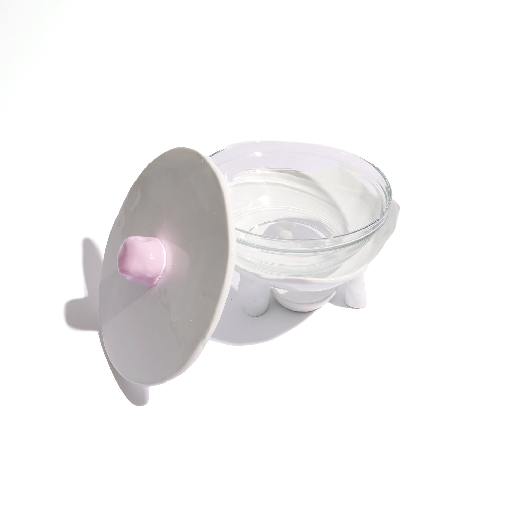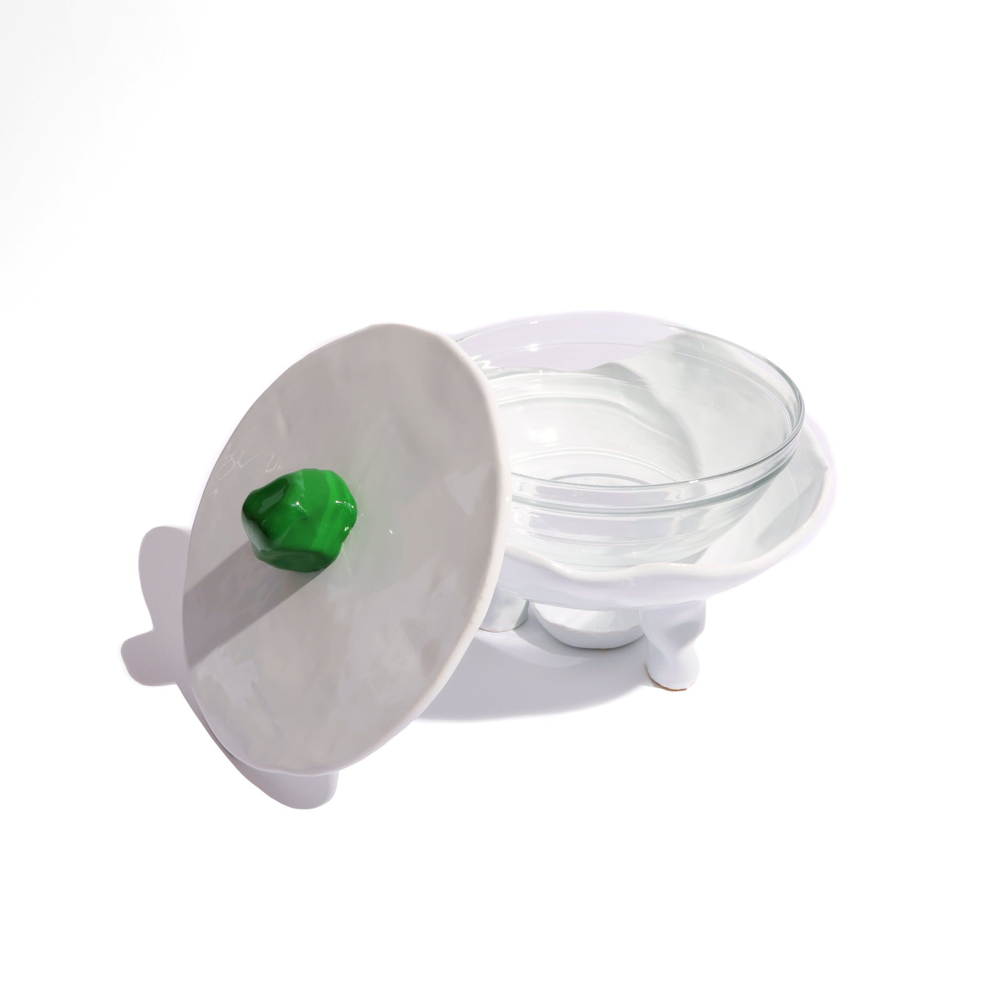 Handmade ceramic round chafing dish for serving food in style and keeping it warm.