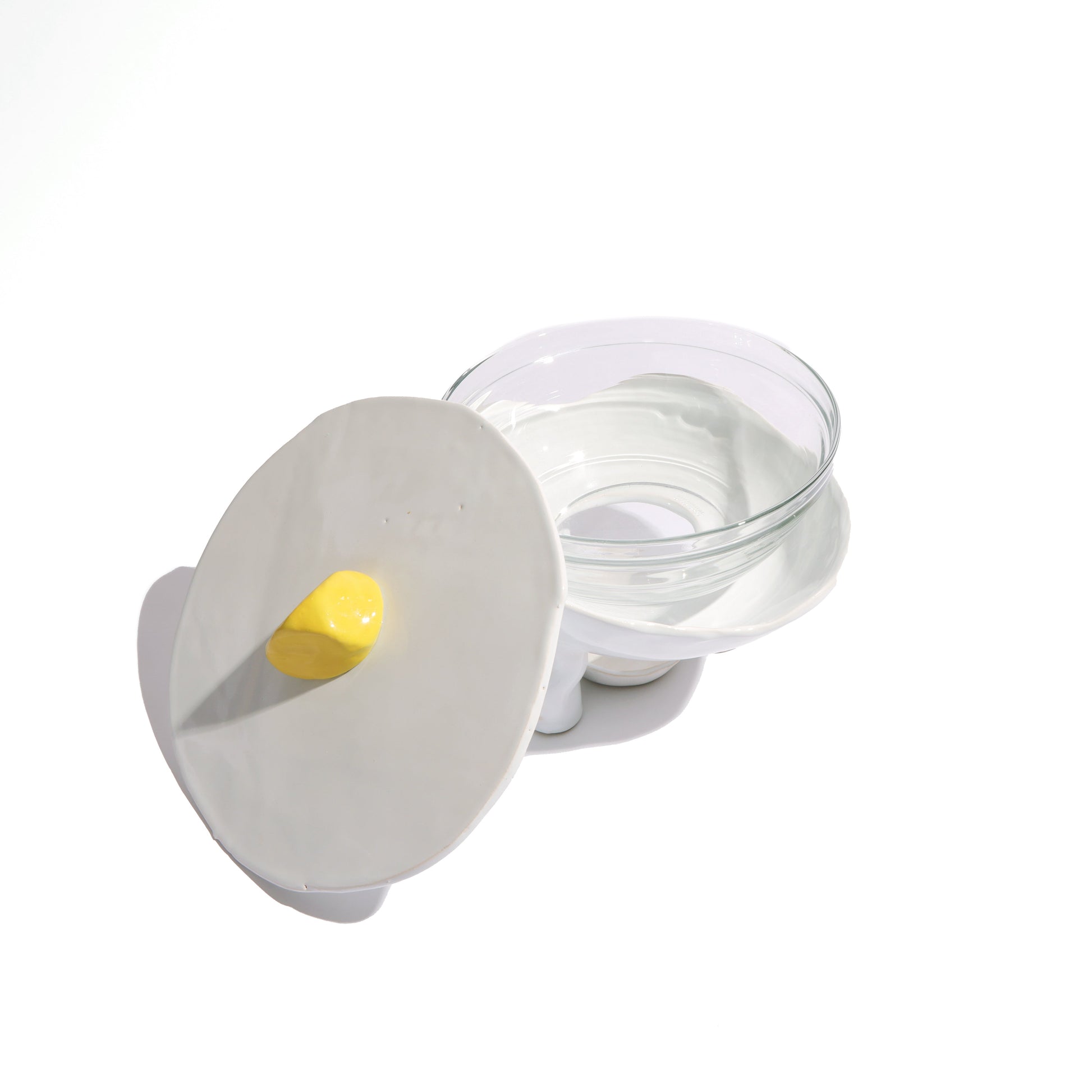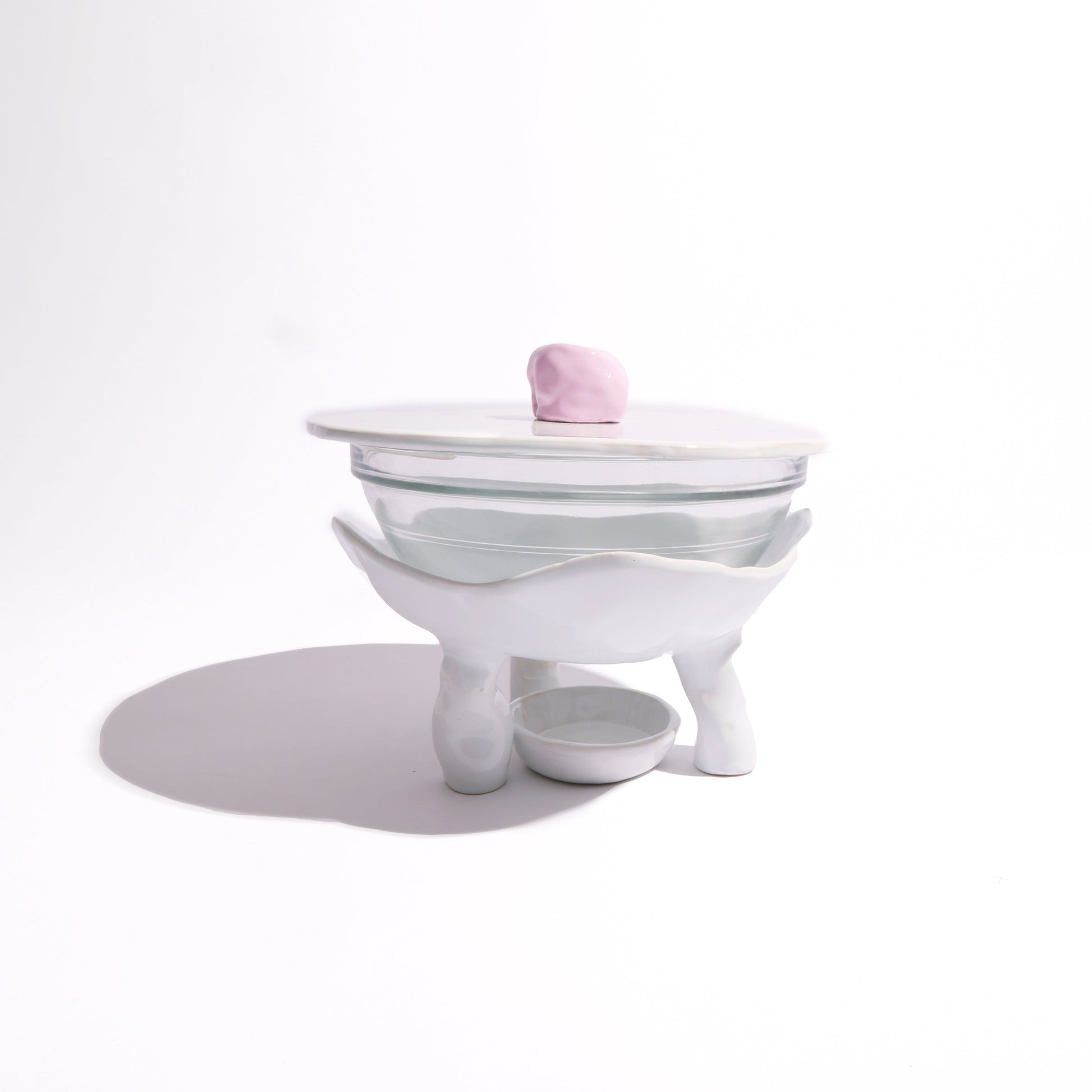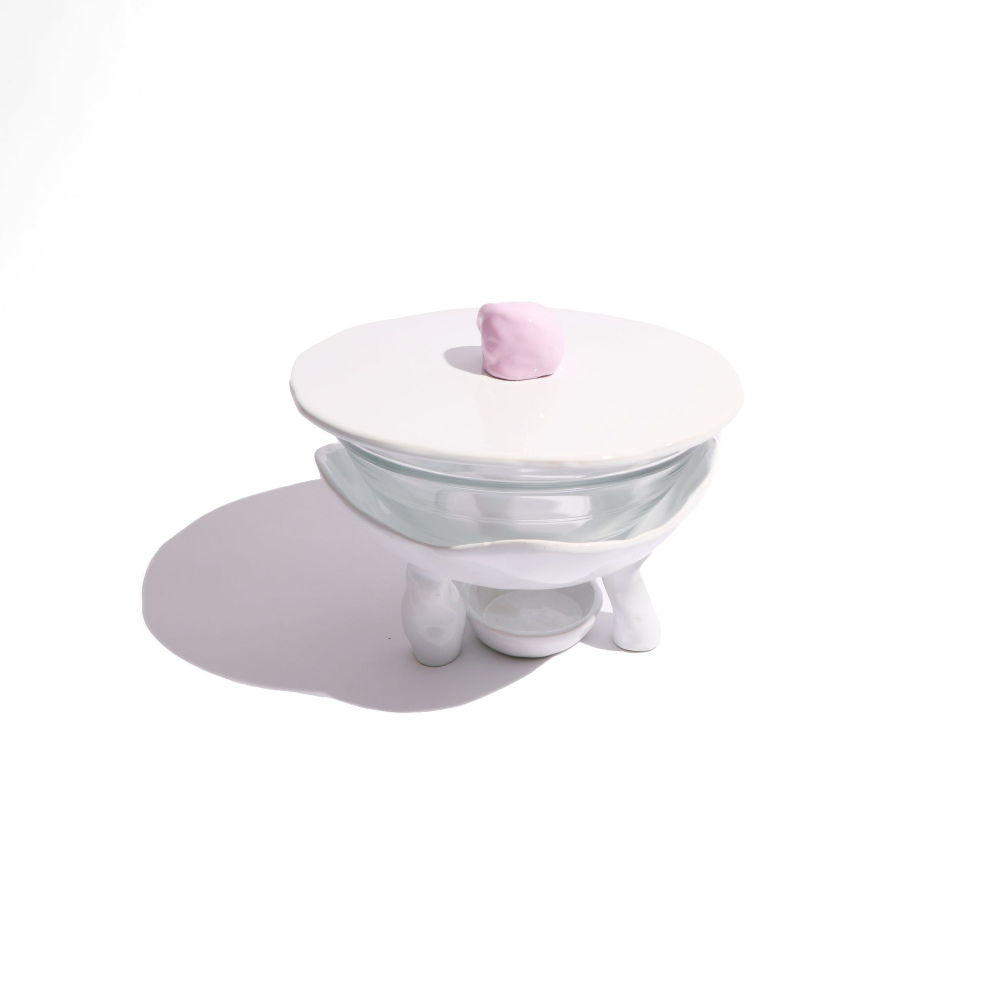 Includes 1 ceramic base, 1 ceramic cover, 1 glass container and 1 ceramic candle holder.