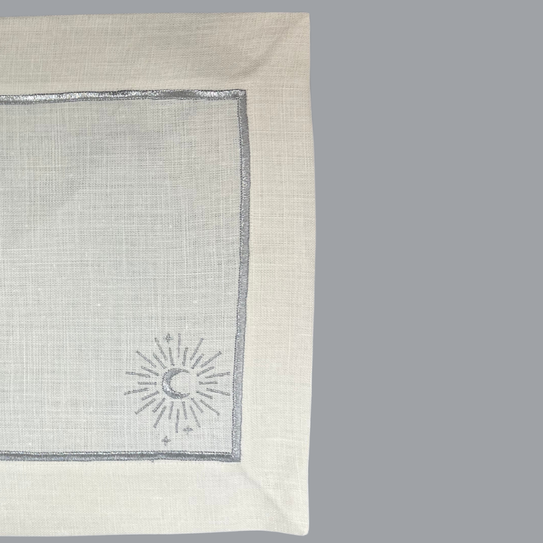Set of 6 placemats with rectangle embroidery and an embroidered moon pattern