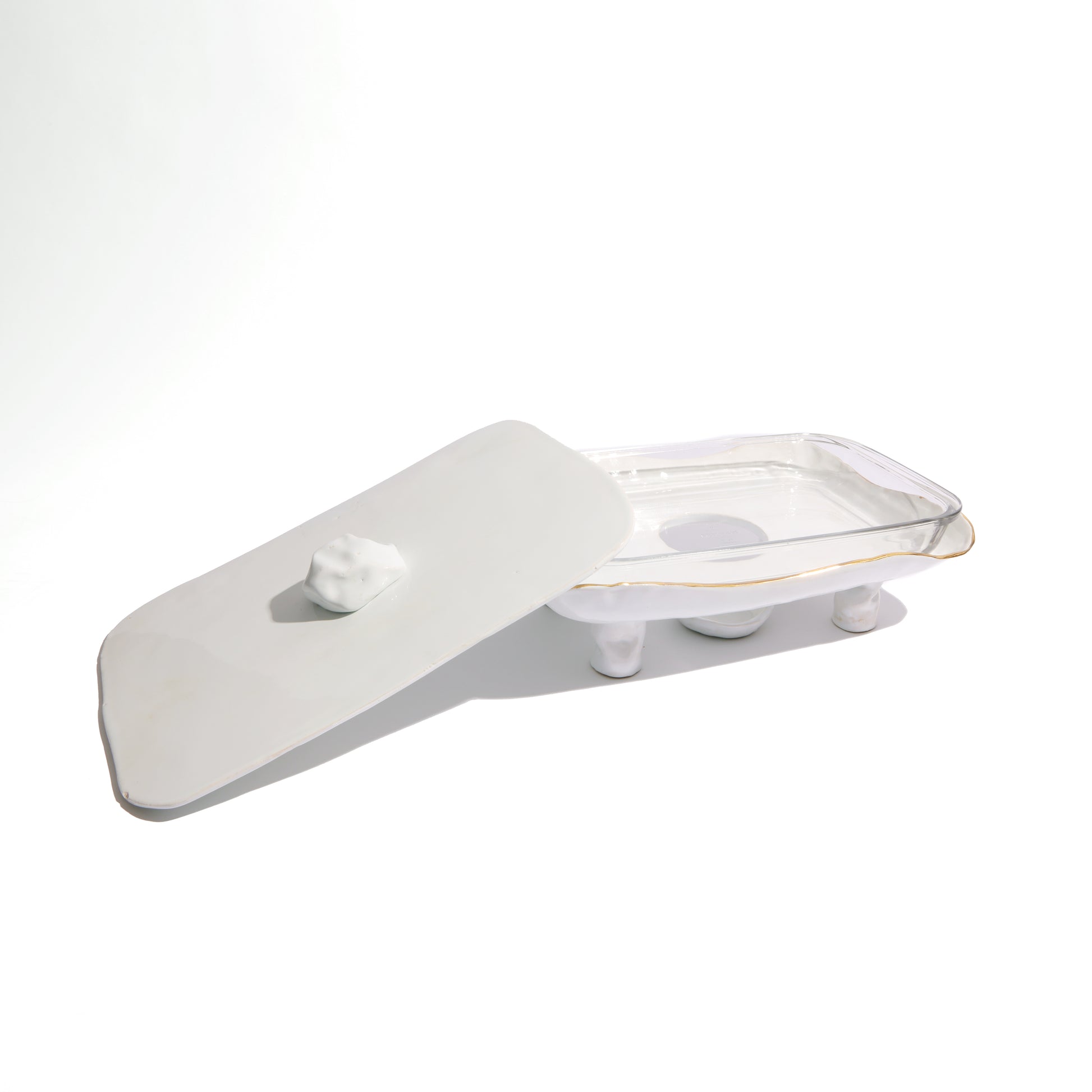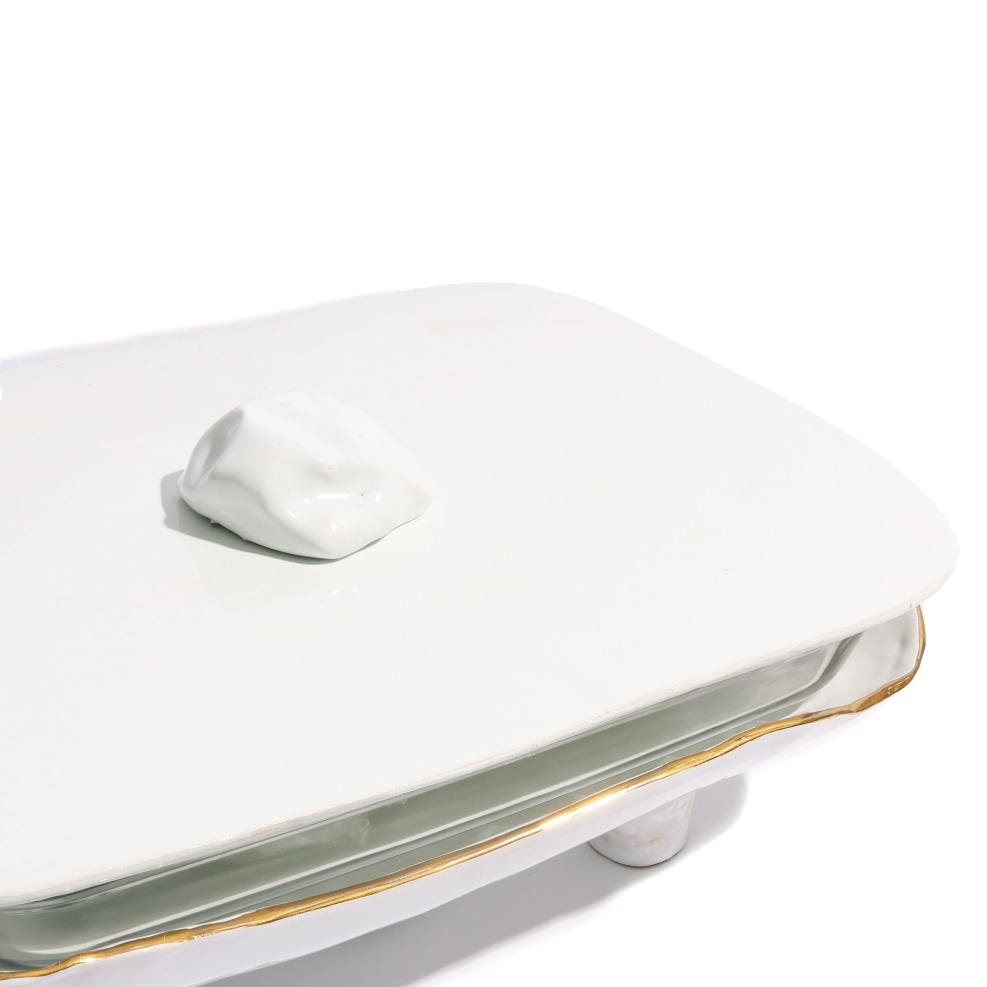 Handmade ceramic rectangle chafing dishes for serving food in style and keeping it warm.