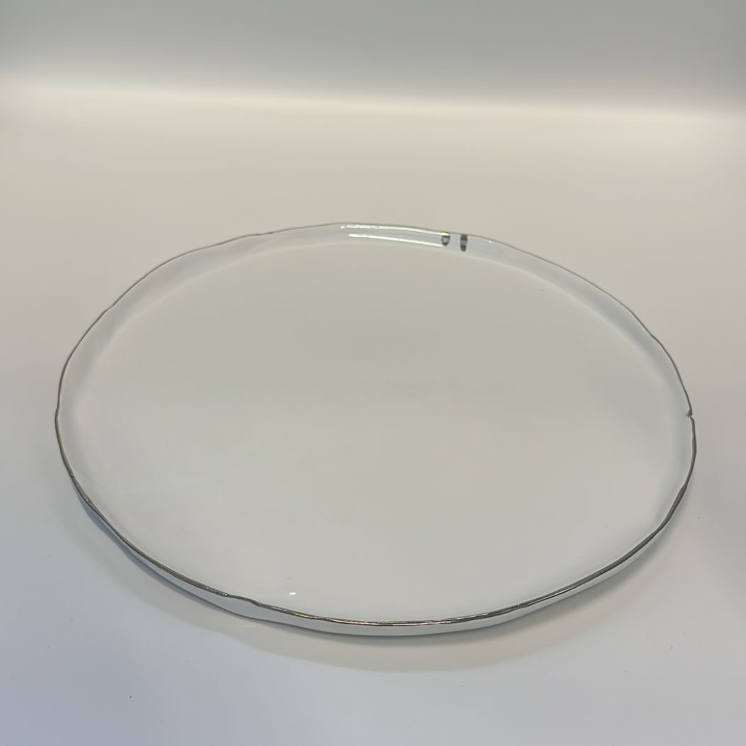 1 organic handmade silver ceramic charger plate. Can also be used as a serving plate.
